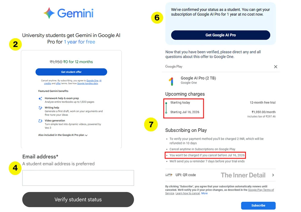 1. Can you get free Google AI Pro Student offer without adding your payment info? No. To activate the free Google AI Pro student offer, you must add your payment information (UPI / Debit / Credit card). However, you will not be charged for the first year. You have the option to cancel the subscription before the free period ends to avoid any charges.